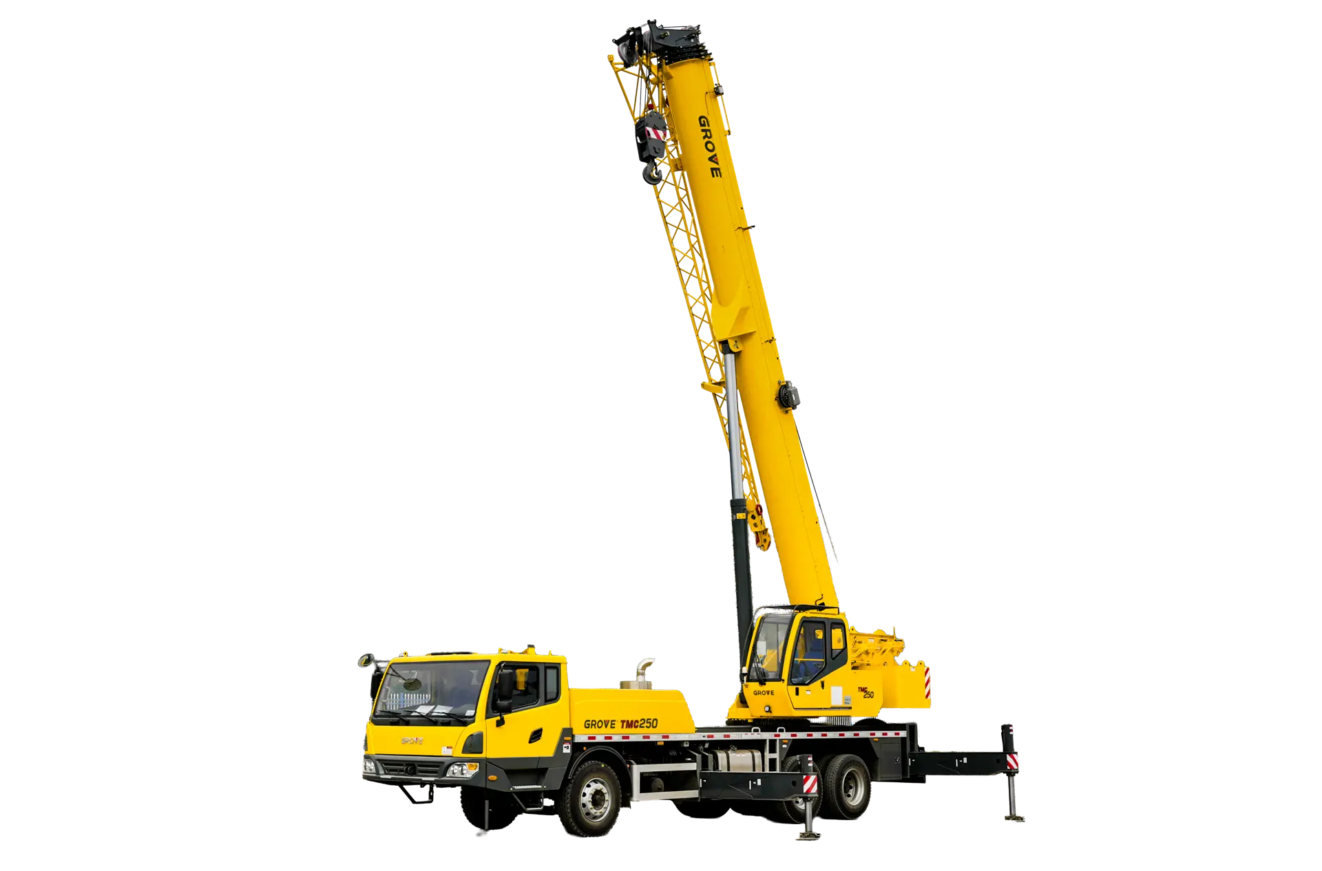 Very compact dimensions and all equipment on board guarantee a fast set-up and immediate readiness even on tight jobsites. The TMC250 features a five section 43 m main boom and an extra 9 m jib.